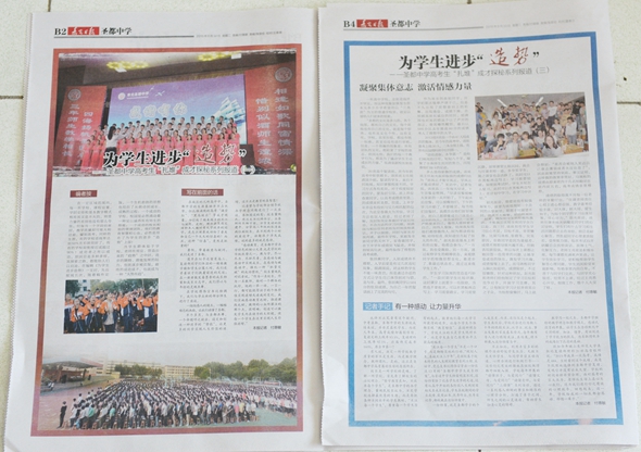 报社在特为报道加的编者按中指出:在编辑《为学生进步造势》一文时,先后披阅五次,随着稿件定版,一个生机勃勃的思想也经历了从萌动到成长、成熟的过程:一个成功的学校,校园里必然涌动着一种足以涵养所有师生的势能;一个成功的校长和他的管理团队,他们的教育智慧和心血,必然是用在了为学生的进步“造势”上面!