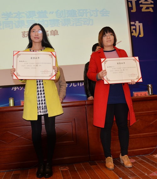 11月16日,全国“学本课堂”创建研讨会暨寿光实验区成果展示活动圆满结束,我校有七位老师获奖,成为获得奖项最多、奖次最高的学校,受到中国教育科学研究院领导、专家的首肯。其中,王尚红老师的高级思维训练课和16班的团本教研活动展示,成绩优异,博得最热烈的掌声。王尚红、桑红杰老师分别荣获特等奖,张仁升、杨胜利、林万泉老师获得一等奖,张涛老师获得二等奖,副校长吴扩林获得指导教师一等奖。