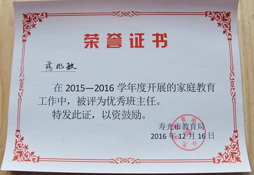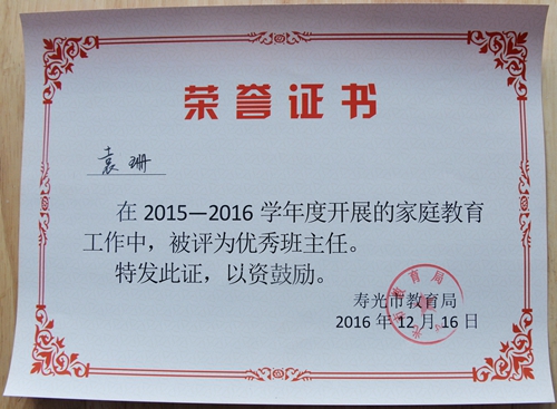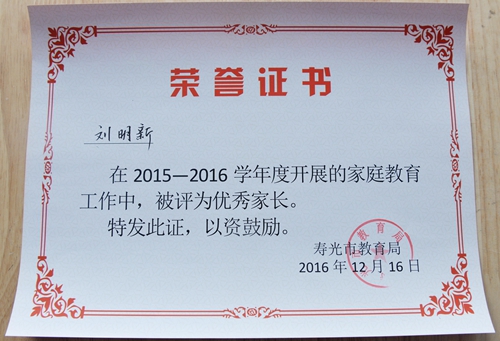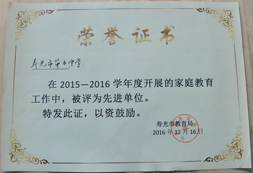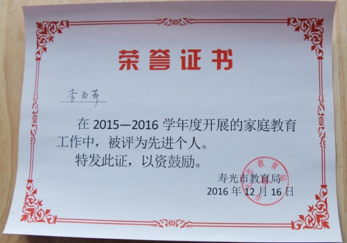 1月12日,学校收到了教育局为我校及个人颁发的家庭教育先进单位及先进个人等荣誉证书。