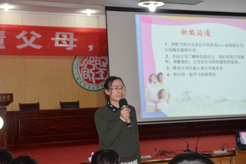 周老师在讲座中带领同学们通过一个个真实的事例走近父母、读懂父母,引领同学们在感人的故事里品味艰辛,在动情的回忆中感受真情。一幅幅感人的画面、一例例感人的事例深深打动了在场的同学,很多学生流下了感动的泪水。周老师在讲座中就如何与父母更好的交流沟通与高一同学进行了分享。