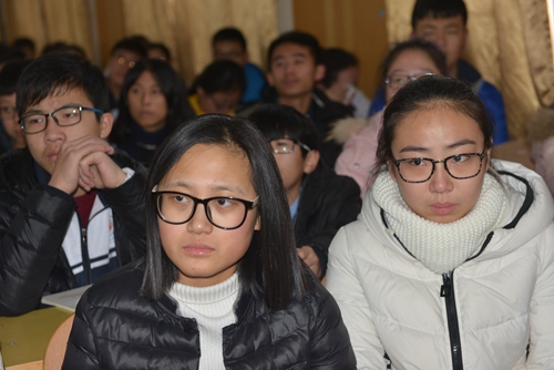 1月14日,我校“读懂父母,与爱同行——亲情体验”讲座在学术报告厅举行。学生成长指导中心教师周阿妮主讲,指导中心主任李百芹主持,高一全体同学聆听了讲座。