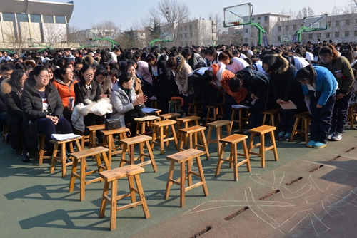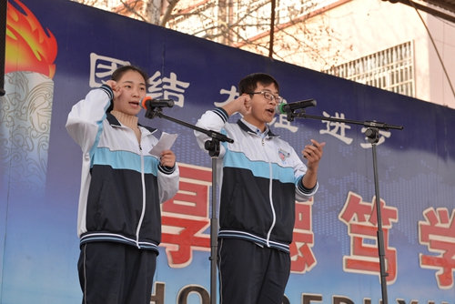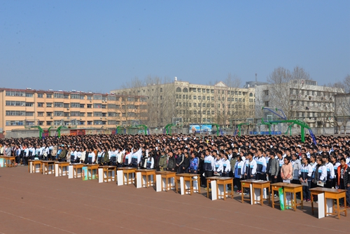 2月24日下午,圣都中学复读部全体师生齐聚体育场,隆重举行高考百日冲刺誓师大会,会议由复读一部主任杨益祥主持,副校长张建平做《沉着应对,挑战自我,以最佳状态迎接高考》动员报告,复读二部主任郎旭军就班级管理方面做了具体要求。