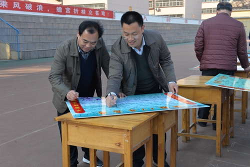 又是一年春来早,又是一年亮剑时。复读部全体同学在誓言板上庄重签名,2017年高考百日冲刺誓师大会圆满结束。