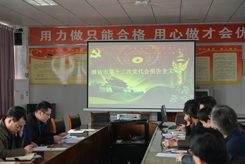 会后,党建办负责同志带领大家集中学习了《潍坊市第十二次党代会报告》。