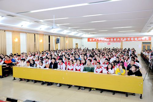 台上是信任,台下是鼓舞,500名高三学子摩拳擦掌,当大屏幕上切换成《相信自己,潜力无穷》的视频时,整个报告厅沉浸于一片神奇力量的包围中,纯净自然,每个人的脸上,流露出自信的光芒。