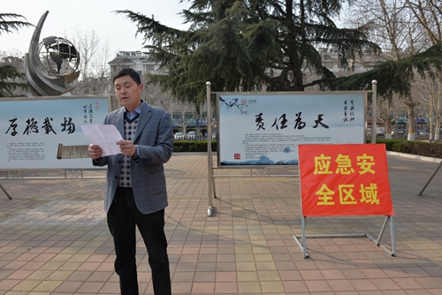 张虎林副主任在演练总结时充分肯定了同学们在演练中体现出来的团结协作精神和迅速反应能力,也指出了存在的问题,郑重提醒同学们:要进一步增强安全意识,提高抵御和应对紧急突发事件的能力,齐心协力打造安全校园。