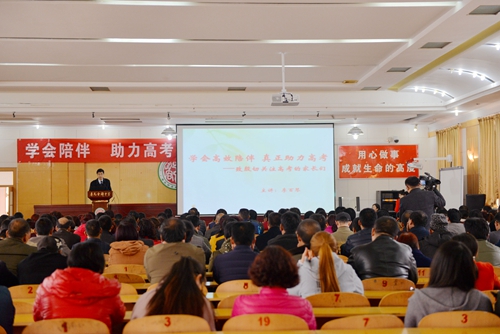 面对台下一双双渴望的眼神,一缕缕隐隐露出的白发,一张张皱纹布满的脸庞,李主任柔声细语:高考,考的不仅是分数,真正较量的是孩子的情商、耐挫力、抗干扰能力等,作为家长,在孩子冲刺的关键时刻,应该站在孩子一边,给他们足够的自由和信任,提供心理营养,可是,我们真的站在孩子一边了吗?有没有给他们使了反劲?
