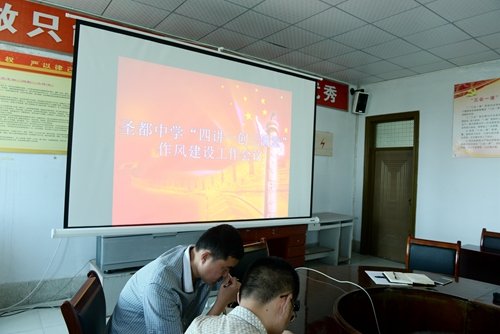 5月18日下午,“圣都中学四讲一创三满意”主题党建工作会议在党员活动室举行,副校长、党总支副书记杨守苗主持,党总支书记傅伟宗传达市局会议精神并作活动部署,校长董绳民作“以‘四讲一创三满意’活动促备考工作全面升级”主题讲话。
