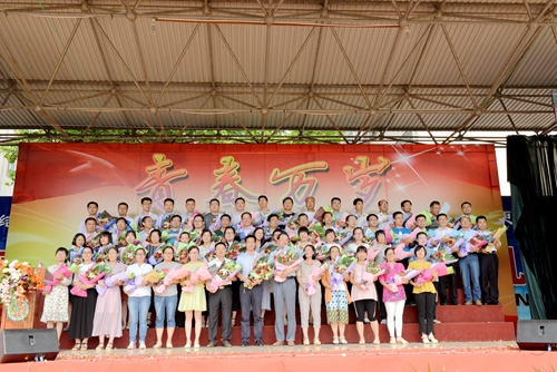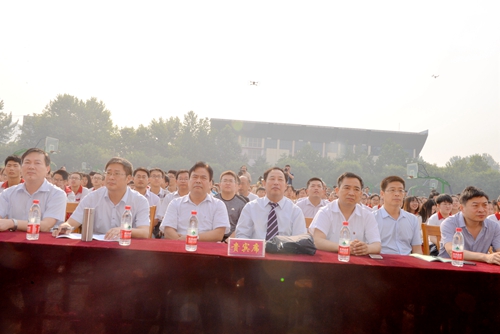 会后,学校领导班子、高三级部全体教师在“青春万岁”毕业仪门前为同学们送行。