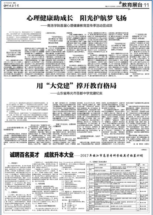 文章从“政治高度抓建章立制,促制度管理升级;党建工作全员化,促整体育人质量提高; 用党建促德育创新,为孩子撑起成长保护伞”三方面,对我校在教学质量、德育、安全校园建设、师生生活实现学生、家长和社会满意的经验和做法进行了报道,见报后被多家媒体转载。