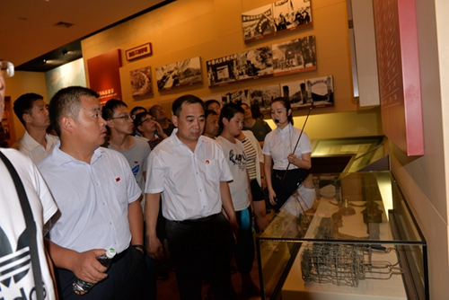8日下午2点,在经过九个小时的长途跋涉后,队伍到达河北省平山县西柏坡,党员们穿上军装后整齐有序的参观了西柏坡纪念馆,站在毛泽东、周恩来、朱德、刘少奇、任弼时等五大书记的铜像前,党建办主任董良源带领全体党员重温了入党誓词。
