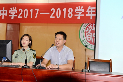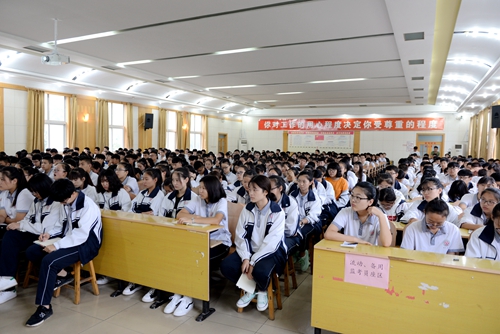 9月10日下午四点,我校“消防进军训、进校园”专题报告会在学术报告厅举行,寿光市消防中队李莉同志应邀做专题报告,教育处主任王新光主持,级部主任马骁偕高二年级全体师生倾听了讲座。