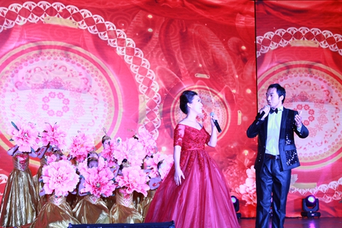 除歌曲、舞蹈、配乐朗诵等歌舞类以及小品、相声节目,晚会还推出了吉他弹唱和扬琴独奏。整个晚会现场灯光璀璨,气氛热烈,一千多人,欢聚一堂,喜气洋洋,共庆祖国华诞。