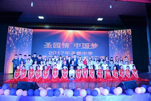 9月30日晚,我校“圣园情 中国梦”主题金秋艺术节暨国庆文艺汇演在东餐厅隆重举行,校长董绳民和副校长杨守苗、马友会、冯永刚、张清泉、张建平、刘云祥偕高二、高三全体师生观看了演出。