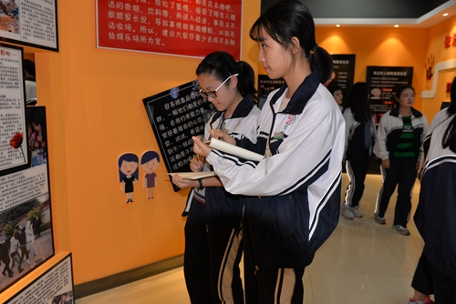 为使学生了解毒品的危害性,强化"远离毒品,珍爱生命"意识,10月20日下午,我校组织高二年级全体学生到文家中学禁毒教育展馆参观学习。