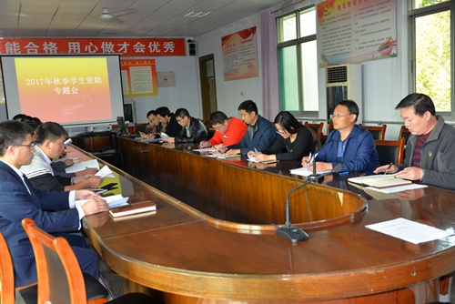 为保障家庭经济困难学生顺利完成学业,11月7日上午,我校在行政会议室召开2017年秋季学生资助工作专题会,副校长马友会主持,学生资助中心主任辛彦光宣读《寿光市圣都中学家庭经济贫困学生资助实施办法》,并对助学金评审日程做具体安排,校长董绳民偕各级部主任、班主任参会。