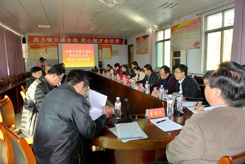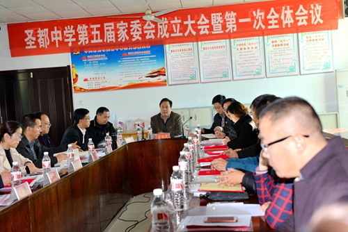 学生成长指导中心主任孙玉果宣读《圣都中学第五届学校家庭教育领导小组成员及家委会委员名单》,主持人刘云祥介绍了学校家庭教育领导小组成员以及新一届家长委员会构成机制,并就家校联手共同培养孩子的问题与各位家长交换了意见。