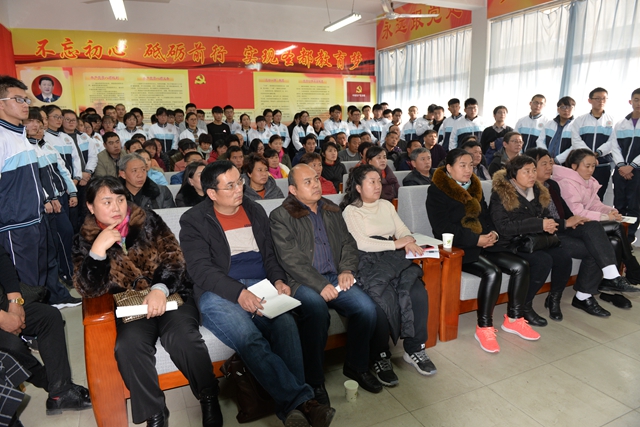 12月9日上午,我校复读生成长家校共商会在学术报告厅分两场举行,级部主任郎旭军、杨益祥主持,党总支复读支部书记、副校长张建平做 《执子之手,与你共赢》精彩报告,来自全省各地的一千多位家长与会并与孩子们共进午餐。