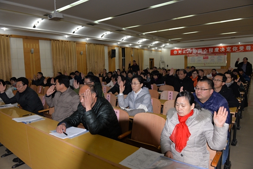 1月21日晚,教代会在庄严的国歌声中召开,工会主任冯永刚主持会议,傅伟宗书记致开幕词并作学校财务工作报告,董绳民校长以《转变作风,务本求进,争创教育现代化品牌》为题作学校工作报告。