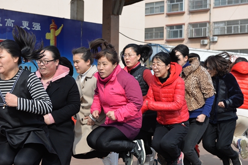 3月6日,如诗如画三月天,万物复苏,我校“健康、美丽、感恩”主题庆“三八”趣味比赛活动在盎然的春意中举行。校长董绳民热情致辞,女工主任袁珊老师主持,8支跳绳代表队、14个抱球跑小组共164名女教职工参加了比赛。