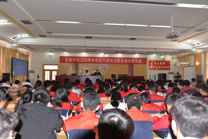 团委郭梁书记以《班干部工作技巧》为题做培训主讲。郭梁同志从学生干部“角色定位”、“责任意识”和“形象树立”三个方面,向同学们传授了班干部工作的原则、主要方法和工作艺术。“一个成功的高中班干部,就是一个艺术家,但又远远高出其他的艺术家,因为它的作品不是静止的没有生命力的作品,而是一个个活生生的人,是会给社会创造无穷财富和价值的人。”郭梁深情地倡议同学们,“一定要特别自尊、自爱、自信、自强,为人表率,让自己的良好风范增强对同学的吸引力,让同学从情感上接纳、从工作上主动配合,共同建设圣都中学更美好的明天。”
