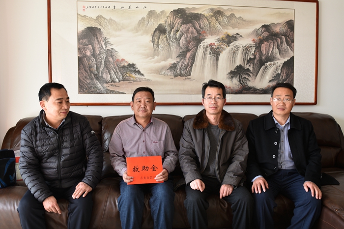1月15日,市教体局资助中心主任刘强在我校党委副书记、副校长傅伟宗陪同下,看望慰问了生病教师纪长久,传递了教体局党委的关心与温暖。