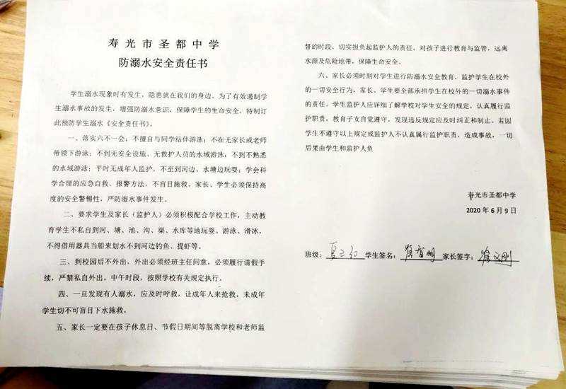 三、家校合作,联合防范。安全管理中心分别起草《致家长一封信》、《安全责任书》,在层层压实责任的基础上,由级部组织班主任利用家长微信群,充分进行宣传教育,明确溺水隐患和危害性,倡议家长节假日期间加强对学生的教育监督,远离溺水风险。