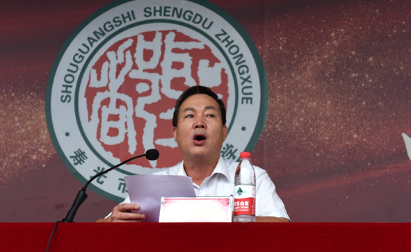 在热烈的掌声中,李耀华校长代表组委会亲切致辞:运动会是力量的展示和增强,圣都是力量之地。每一场比赛,直至每一个竞技动作,都是力量、意志、品质的锻炼与考验。李校长希望各位充分发扬“相互理解、友谊长久、团结一致和公平竞争”的奥林匹克精神,顽强拼搏,赛出友谊,赛出风格,赛出圣都学子的风采与魅力;希望全体裁判员充分发扬“责任为天”的圣都精神,认真、公正执法,为比赛健康有序和高水平进行贡献力量;希望全体大会工作人员充分发扬圣都中学“优势互补”的优良作风,尽职尽责,为本届运动会提供一流的服务。