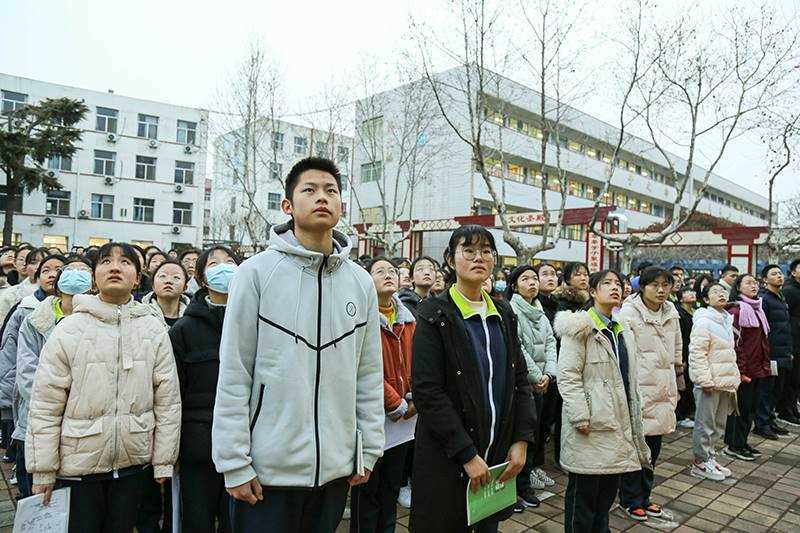 在全体师生的注目下,国旗队庄严走来,伴着庄严的国歌声,五星红旗冉冉升起。副校长张建平以《信心来自实力,实力来自功夫,起跑就是冲刺,开局便是决战》为题发表讲话。张建平首先肯定了同学们在过去六个月付出的努力和取得的成绩,并提醒同学们,春节已过,最后的决战拉开序幕,要认清形势,正视问题,拿出百倍的信心和勇气,顽强拼搏,心无旁骛地投身于高考冲刺中。