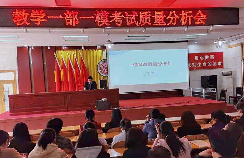 3月16日,教学一部在学术报告厅召开一模检测质量分析会。副校长张建平做会议总结,校长助理郎旭军做工作部署,级部主任陈石蕾对一模成绩进行分析并对二轮复习做安排部署,一部全体教师参会。
