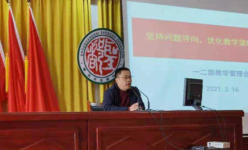 张建平充分肯定了一部老师们在前段工作中所做的努力和取得的成绩,从“高度责任心是成功的前提与保证展开,从边缘学生抓促到精准教学,从研究高考试题到强化立体教案,从课堂三讲三不讲到最近发展区教学等内容详细阐述,最后希望全体教师努力工作,以必胜信念积极备战,再创高考辉煌。
