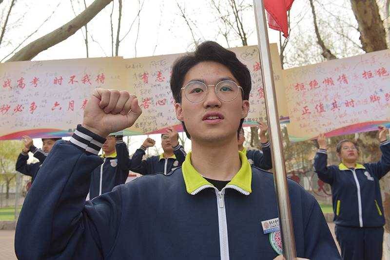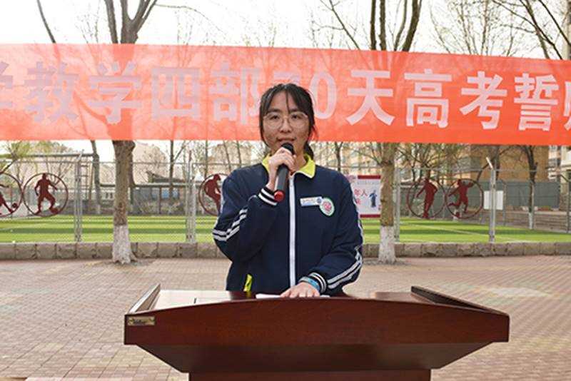 “任劳任怨,强力争先,忠于职守,甘苦与共。”教师代表刘金刚老师表达了真挚的期望和全体教师全力以赴陪伴学生迎考的决心。“黄沙百战穿金甲,不破楼兰终不还。”学生代表张宵萌同学热情洋溢的发言,呼喊出2021高考最强音。
