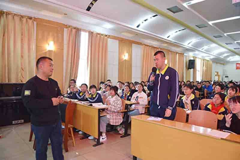 慈建宇以《修心炼胆,知行合一》为主题,首先对《西游记》不同人物的特点进行剖析,并与复读生活相结合,提出了修心炼胆的重要性;随后对王阳明“心即理”、“格物”、“知行合一”、“致良知”等核心心学观念进行了阐述,教育同学们在当下的学习和未来的为人处世中,都要坚守本心,凸显诚意,为善去恶,去伪存真;最后以李大钊事迹为例,号召同学们点燃青春斗志,努力拼搏,自强不息。整个过程引经据典,气氛活跃,互动灵活,即融入了学科知识,又传授了修心做人的道理,同学们听得热血沸腾,意犹未尽。大讲堂在热烈的掌声中结束。