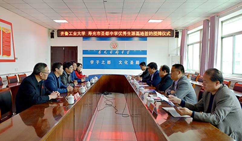 双方本着“携手培养、共同发展””的原则,签订了《齐鲁工业大学(山东省科学院)优质生源基地建设合作协议书》,齐鲁工大冷建材主任向李耀华校长授予齐鲁工业大学优秀生源基地牌匾。随后,双方代表就深度合作进行了热烈交谈。