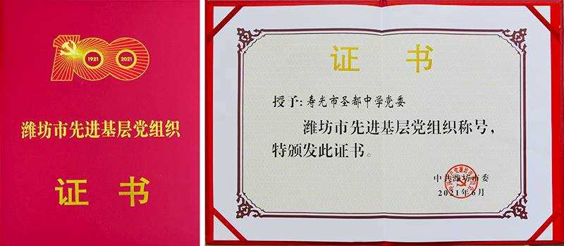 迎接建党百年之际,圣园喜报频传。6月28日下午,在潍坊市“两优一先”表彰大会上,我校党委被授予“潍坊市先进基层党组织”称号;6月29日上午,寿光市召开了“两优一先”表彰暨“学习先模人物先进事迹、建设现代化高品质城市”总结交流会,副校长张海涛、团委书记李小平分别荣获“寿光市优秀共产党员”、“寿光市优秀党务工作者”称号。