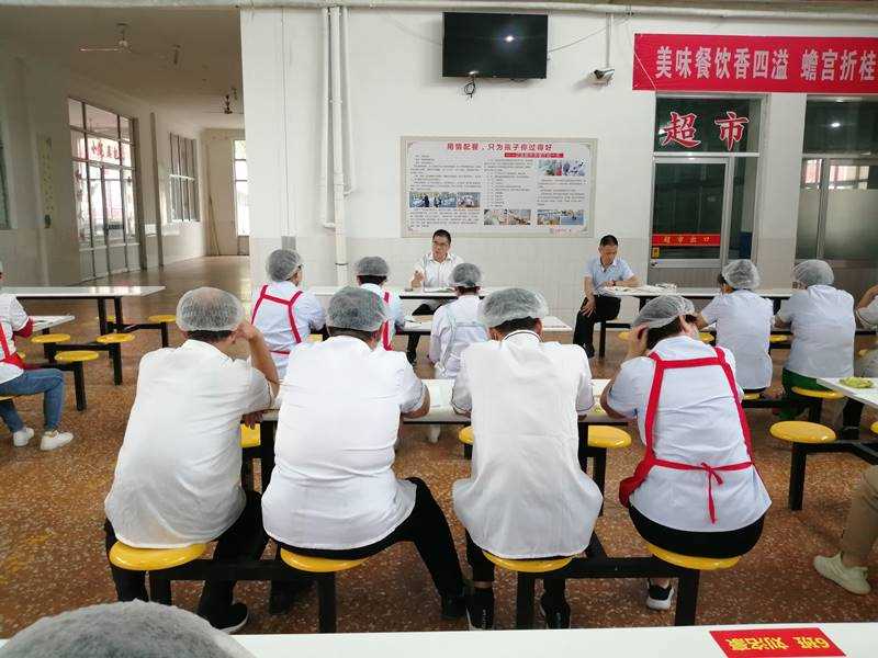 张清泉提出食材的采购与饭菜的操作流程要进行严格把控;卫生方面要做到各操作间地面整洁,饭菜售卖期间员工要戴好口罩、手套和工作帽;饭菜搭配要丰富多样,在“色香味俱全”的膳食目标下,逐步开启“低油低盐”的健康生活模式;饭菜上窗口的时间要控制好,确保每位学生都能吃上热乎的饭菜。希望大家增强食品安全、服务意识,不断提高餐厅的饭菜质量,提升工作人员的服务质量,筑牢学校师生“舌尖上的安全”。