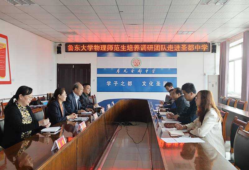 张建平首先代表学校对鲁东大学物理系调研团队的到来表示热烈欢迎,并向对方介绍了圣都中学的校园文化、办学理念及教学成果。随后两校代表针对人才培养、师德养成、物理教学等方面展开了交流和探讨。