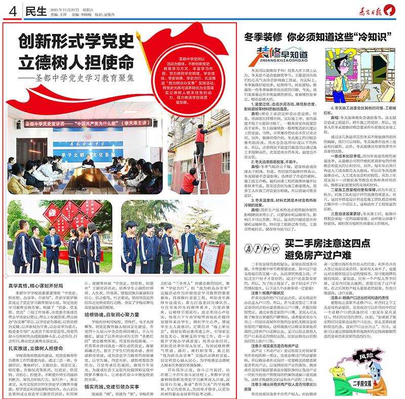 版头条以《创新形式学党史,立德树人担使命》为题,报道了我校创新党史教育学习方式,助推学校高质量发展的经验。