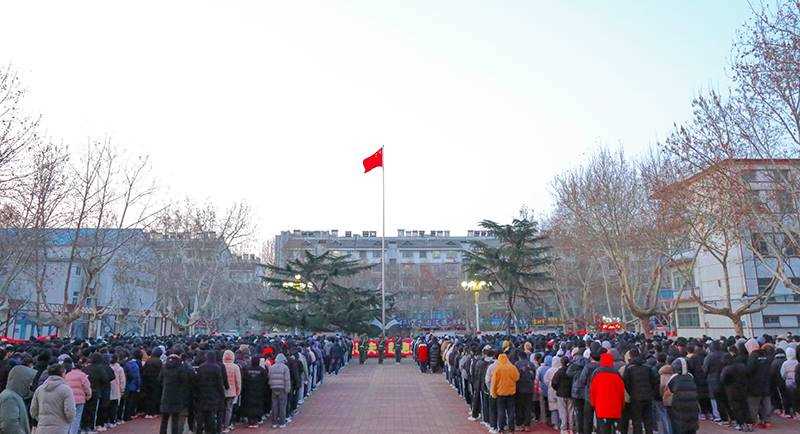 国歌响彻圣园,五星红旗冉冉升起,全体师生庄严肃立。张建平肯定了上学期全体师生付出的努力和取得的成绩,并结合身边的真实案例,诠释了李耀华校长励志标语“信心来自实力,实力来自功夫,起跑就是冲刺,开局便是决战”的深刻内涵,提醒同学们,从现在开始,拿出力量和勇气,向问题宣战,向懒惰开刀,万念归一,以更大的干劲和更高的热情投入到后期的学习中去。