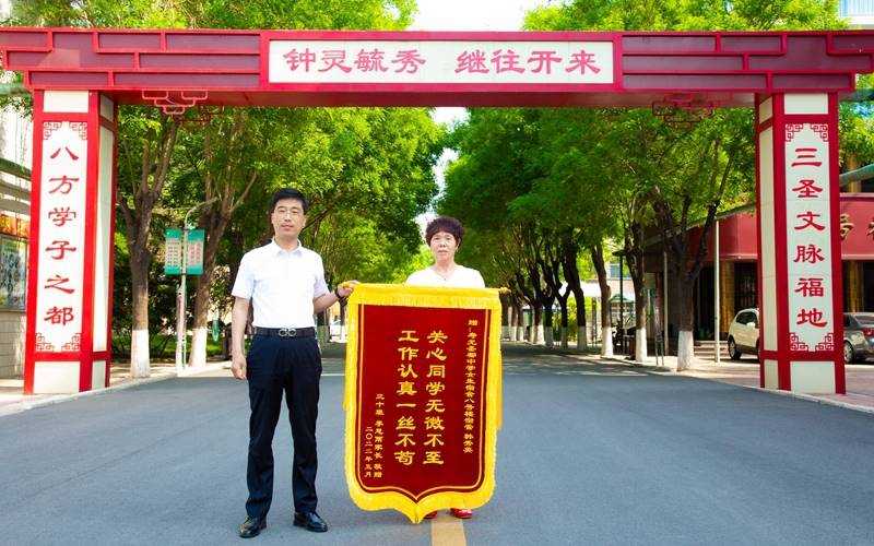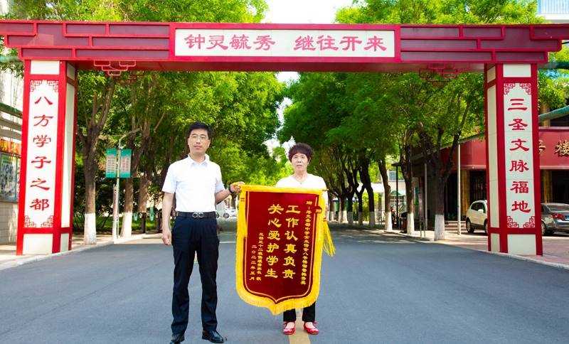 多年来,8号楼楼管员韩秀英,始终秉承“责任为天”的圣都精神,把学生们当成自己的孙女,疼爱有加,逢年过节,给学生做好吃的饭菜;学生生病时,送上热水,帮学生拿药;有的学生腿脚受伤,她就骑车带学生去教室上课,风雨无阻。韩秀英无私的付出和关爱,感动着一届届学子,成为学生们积极向上的动力,深受学生和家长的信任和喜爱。5月5日,学生家长寄来了印有“工作认真负责,关心爱护学生”和“工作认真一丝不苟,爱护学生无微不至”的两面锦旗及学生的感恩信,表达了衷心的感谢。