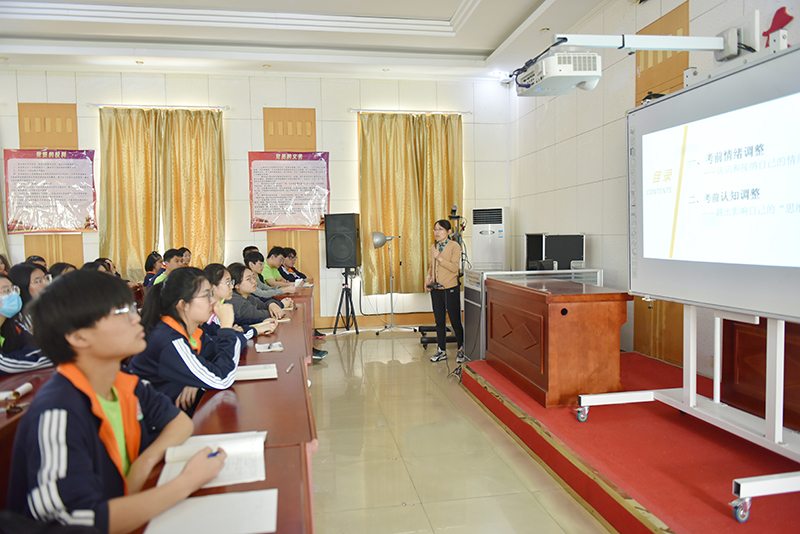 邱桂凤老师结合学生生活与学习,分析了考前的认知状态,总结了影响心态的因素,从合理定位、立足当下、对高考的重新解读等方面指导学生正确认识与接纳情绪,并进行积极调控,跳出影响自己的“思想旋涡”。