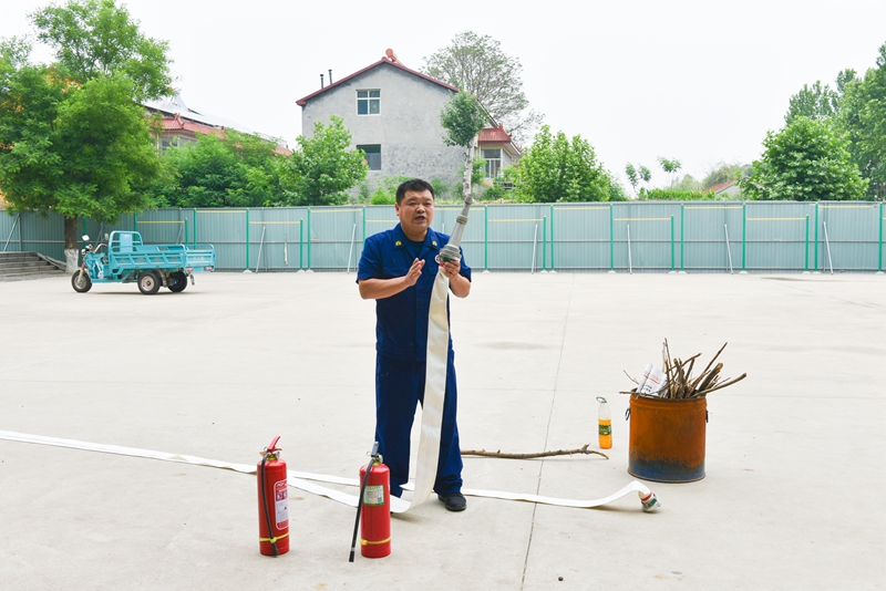 崔建群通过“理论学习+实操演练”的形式,讲解了灭火器、消防带的使用方法和注意事项,并指导参训人员现场开展火灾扑救,随后,崔建群到餐厅实地讲解电器起火和易燃物起火的快速处置方法。