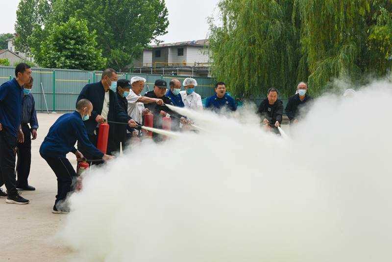 崔建群通过“理论学习+实操演练”的形式,讲解了灭火器、消防带的使用方法和注意事项,并指导参训人员现场开展火灾扑救,随后,崔建群到餐厅实地讲解电器起火和易燃物起火的快速处置方法。