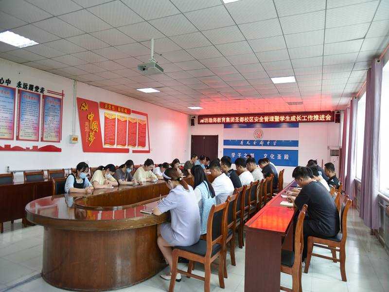 为进一步强化安全管理,提升服务意识,9月18日下午,潍坊渤海教育集团圣都校区安全管理暨学生成长工作推进会在行政楼四楼会议室召开,会议由教育处主任王新光主持,党委委员刘兴旺提出具体要求,教育处、团委、安全中心、学生成长指导中心等相关科室人员参会。