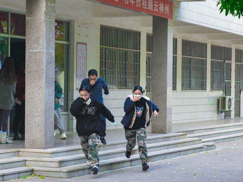 下午15:40,警报声响,各值班教师迅速到位,打开教学楼前后门,组织学生有序疏散,学生按照“谁近谁先,先低后高”的原则,分两路纵队沿楼梯两侧依次疏散,师生密切协作,快速安全地疏散到指定区域,整个过程紧张有序,共用时1分50秒。