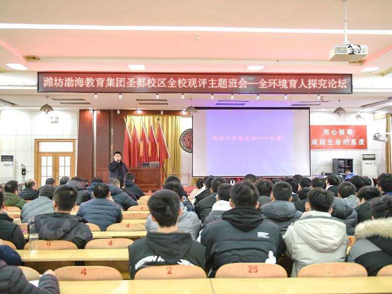 为落实立德树人根本任务,开创全环境育人工作新局面,11月28日-30日,潍坊渤海教育集团圣都校区在学术报告厅东厅开展“全校观评主题班会——全环境育人探究论坛”活动,党委书记、校长付伟宗偕校领导班子成员出席,党委委员刘兴旺主持活动并做总结,相关科室负责人、级部主任、班主任参会。