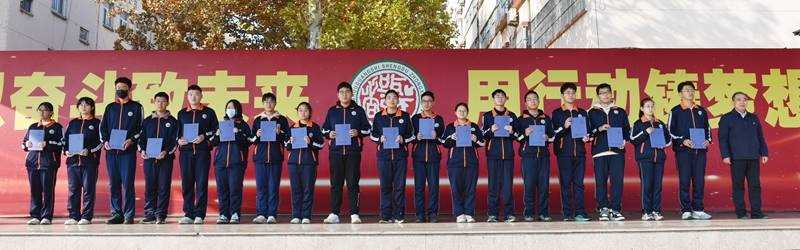 向优秀看齐,向先进学习。荣誉承载的是对成绩的肯定,更是对未来的期待。付校长激励同学们:真正的快乐,不是被多巴胺控制的低级消遣,而是内啡肽带来的高级快乐。获得内啡肽的过程需要专注,可能会有些痛苦,但是坚持下来,你就能成就截然不同的自己。希望大家能够取长补短,踏实而行,再接再厉,再攀高峰。