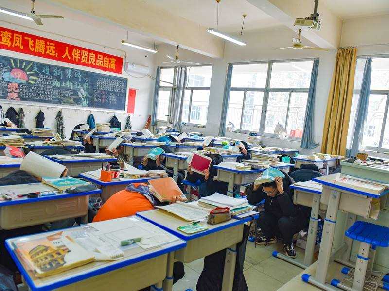 上午10点,警报声响,各班主任迅速组织学生们就地避震,蜷曲身体躲在课桌下面,用书本等物品保护头部,各值班老师按照方案迅速到位,打开教学楼前后门,组织学生有序疏散,学生按照“谁近谁先,先低后高””的原则,分两路纵队沿楼梯两侧依次疏散。整个过程,师生沉着冷静,密切协作,快速、安全、有序地疏散到安全区域,用时116秒。