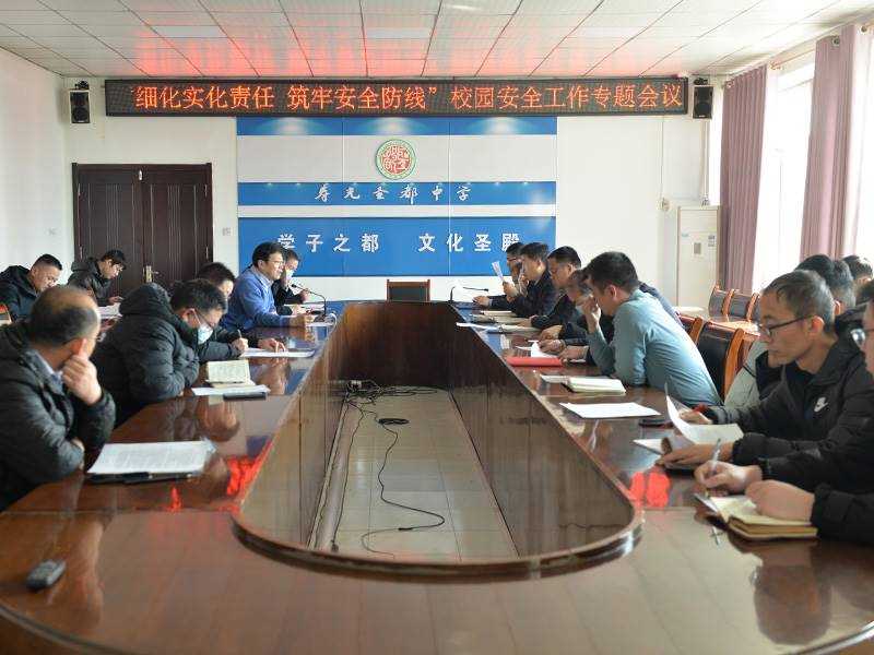 为进一步强化安全意识和责任意识,全力做好冬季校园安全工作,1月26日上午,潍坊渤海教育集团圣都校区在行政办公楼四楼会议室召开校园安全工作专题会议。副校长锡洪武主持会议并提出要求,党委委员刘兴旺做详细部署,校级班子成员,四大处室主任、各级部主任及相关科室负责人参会。