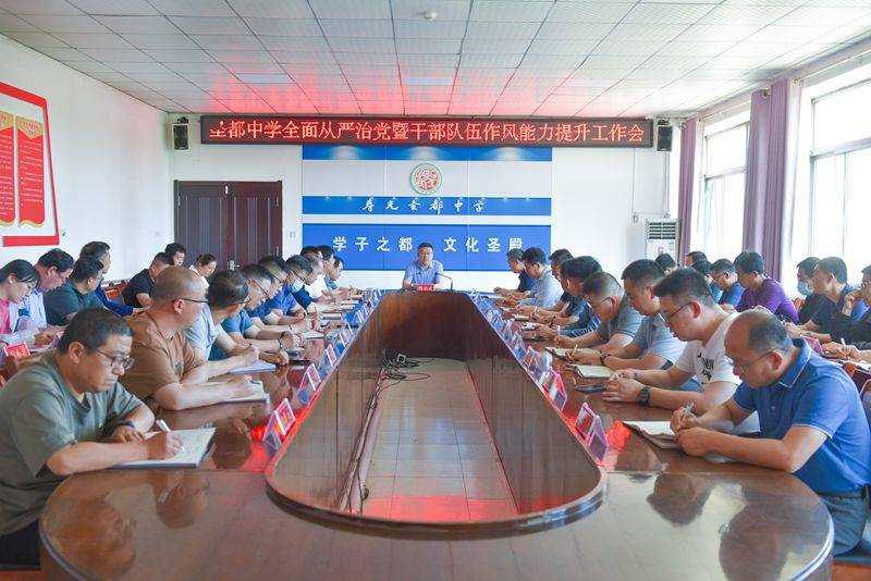 5月15日下午,潍坊渤海教育集团圣都校区在行政楼四楼会议室召开全面从严治党暨干部作风能力提升工作会议。副校长锡洪武主持会议并讲话,党委副书记马有会解读《寿光市圣都中学关于开展党纪学习教育的通知》,全体班子成员、中层干部参加会议。